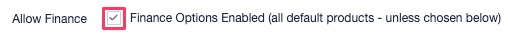 Select at least one of the checkboxes next to the applicable finance products and these selections will only be available if this product is in the basket.