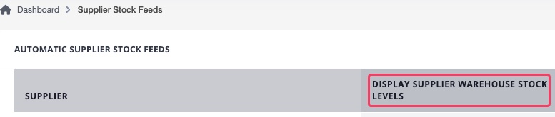 To make this information visible, you need to go to the "products" section by clicking on the "pencil" icon. Then, you'll find the "Supplier Stock Feeds" section where you can see the list of suppliers we currently support.